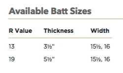 3-1/2" (R-13) covers 90 sqft per bag @ US$120/bag