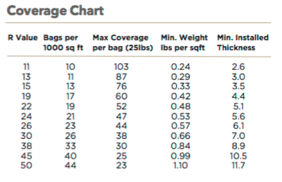 5-1/2" (R-19) covers 60 sqft per bag @ US$120/bag