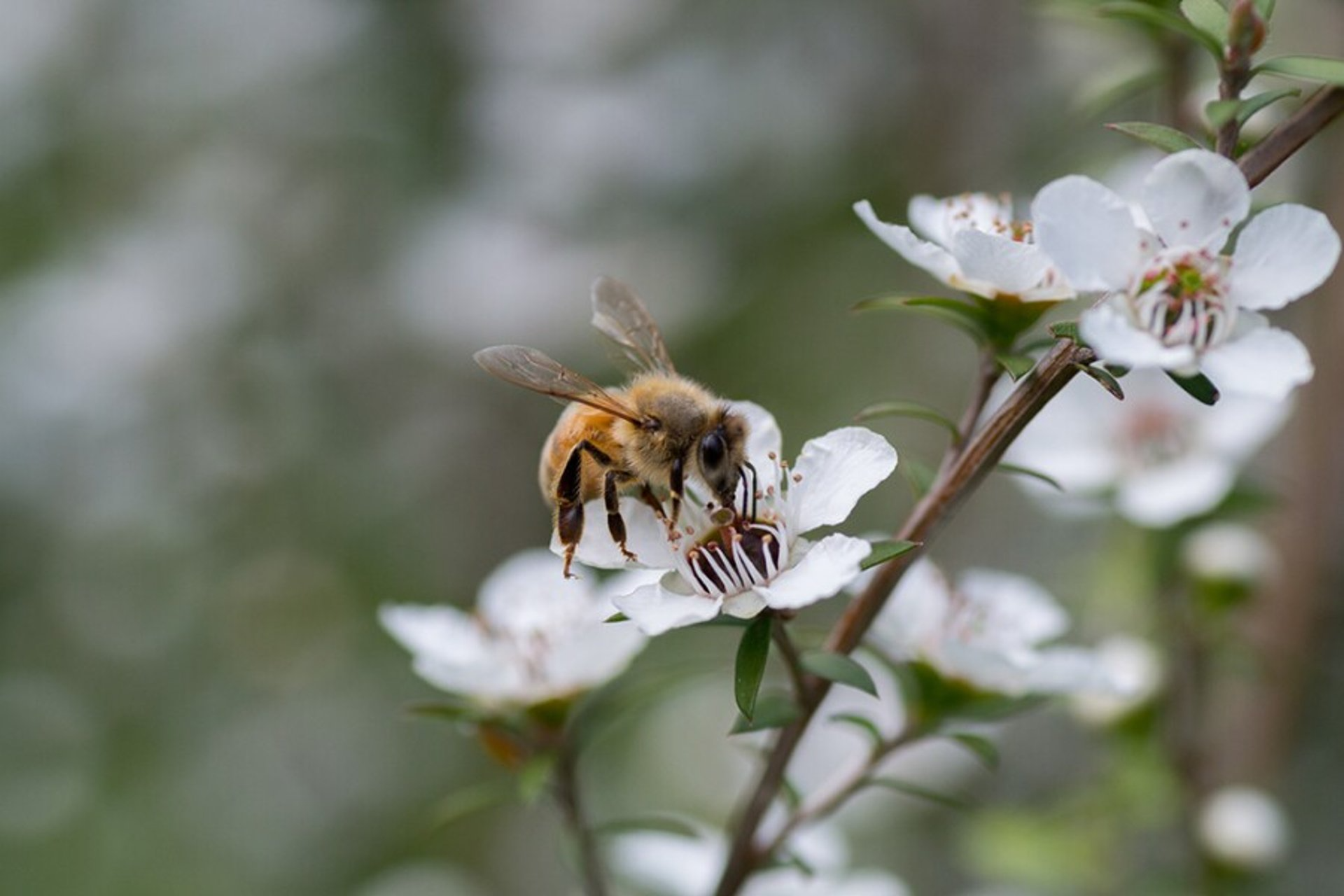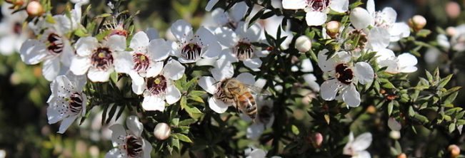 pronounced "MAH-nooka" is named after the manuka bush from which bees gather nectar and pollen. Manuka is a member of the Tea Tree group of plants and is also known as Leptospermum scoparium. The Manuka flowers produce nectar for only 2-6 weeks a year so the bees have a short time to turn it into precious Manuka honey.